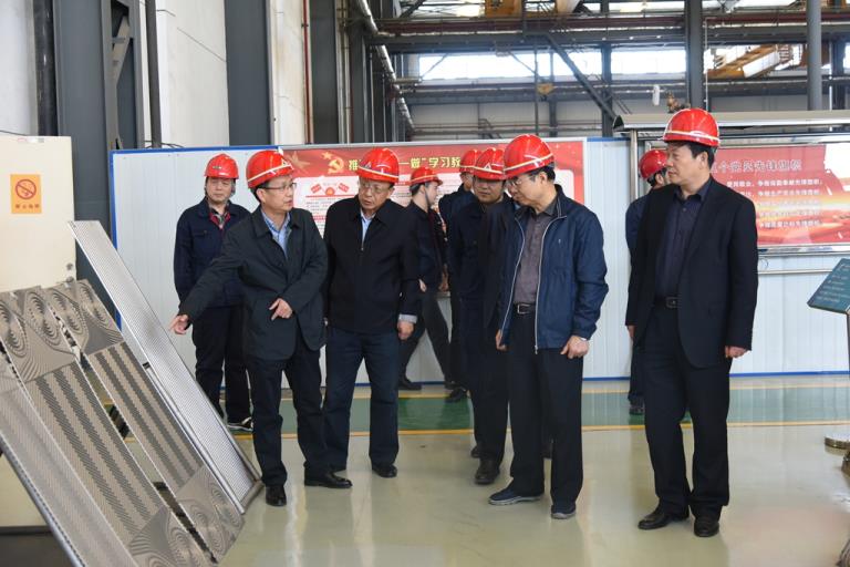 10月31日下午,国务院参事、中国有色金属工业协会会长陈全训、副会长丁学全一行到宝钛集团调研。宝钛集团领导王文生、雷让岐、高颀及相关部门负责人陪同陈全训一行参观了宝钛集团展厅,并到熔铸厂、钛带材料公司、装备制造公司、锻造厂现场调研。