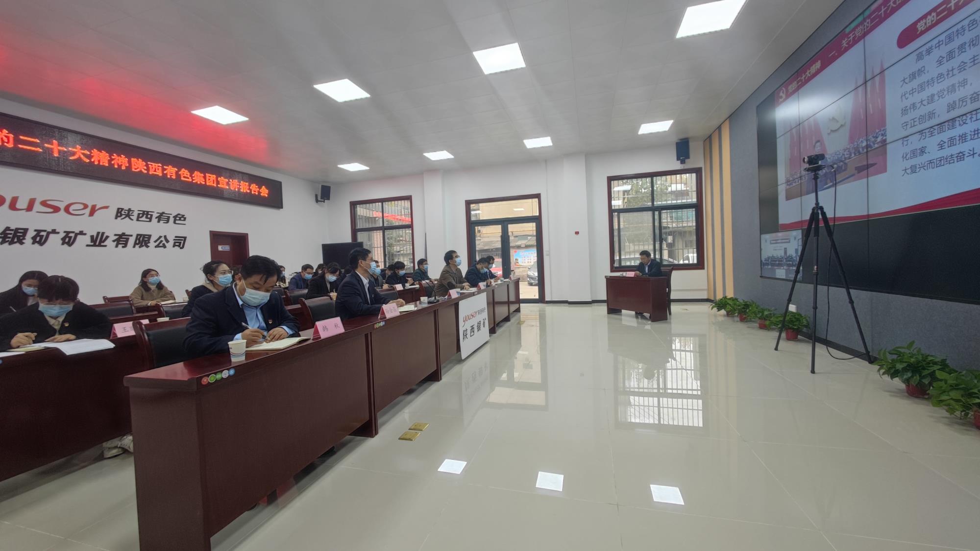 为深入学习贯彻党的二十大精神,根据集团公司党委统一安排,11月23日下午,陕西有色金属集团党委副书记、党的二十大精神宣讲团成员郭仕龙,集团公司总经理助理、党委组织部部长孟钢同志来到陕西银矿,开展学习宣传贯彻党的二十大精神宣讲报告会,报告会采用视频+线下的会议形式召开。公司领导班子成员,机关各部室负责人、各二级单位班子成员及公司党员、职工代表共计约150余人参加学习。