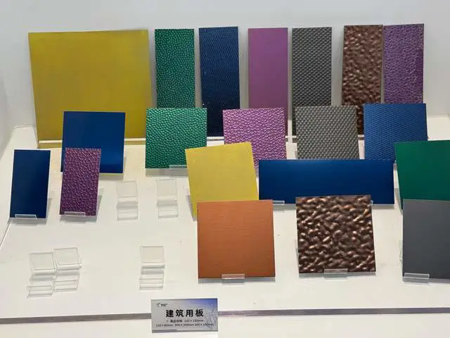 “所谓‘百年建筑’,往往选择钛材作为外墙材料。与普通铝板加氟碳漆的处理方式不同,钛材利用其自然氧化膜呈色,这层氧化膜结构稳定,能有效抗老化、耐腐蚀、不褪色,是钛材的显著特色。”宝钛集团销售部主任邵军介绍,钛材在建筑外墙领域具有独特优势,颜色源自表面氧化膜的厚度,通过阳极氧化技术精准控制膜厚,可实现丰富且持久的色彩效果,因而备受建筑领域青睐。