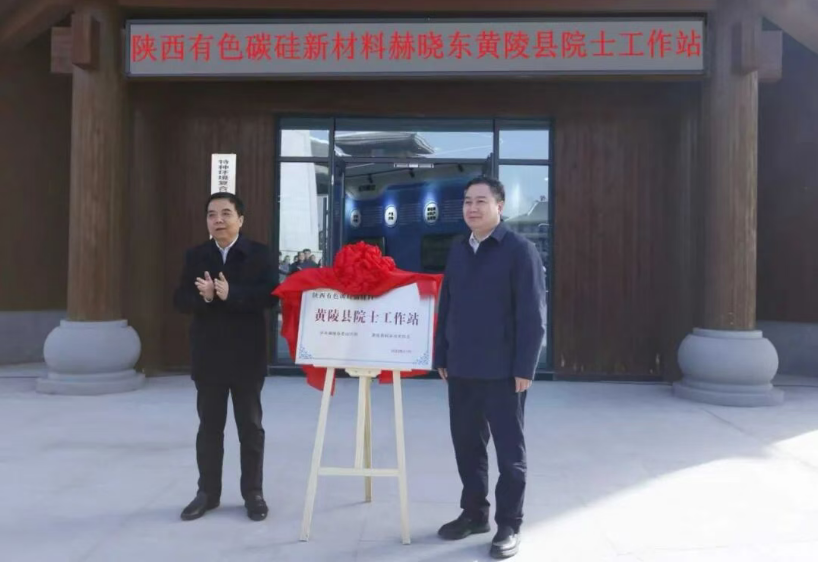 11月26日,陕西有色碳硅新材料赫晓东黄陵县院士工作站(以下简称“院士工作站”)授牌、揭牌仪式在延安市黄陵县举行。陕西省黄帝陵文化园区党工委书记、管委会主任,黄陵县委书记刘矿平为院士工作站授牌,集团公司党委副书记、董事、总经理莫勇与刘矿平为院士工作站揭牌。中国工程院院士、哈尔滨工业大学特种环境复合材料技术国家级重点实验室主任赫晓东,集团公司党委委员、副总经理黄忠良出席仪式。