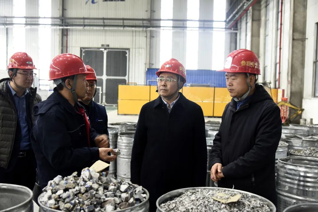 12月23日,陕西有色金属集团党委副书记郭仕龙一行到宝钛眉县工业园调研指导工作。宝钛集团党委副书记、工会主席贺治民陪同调研。