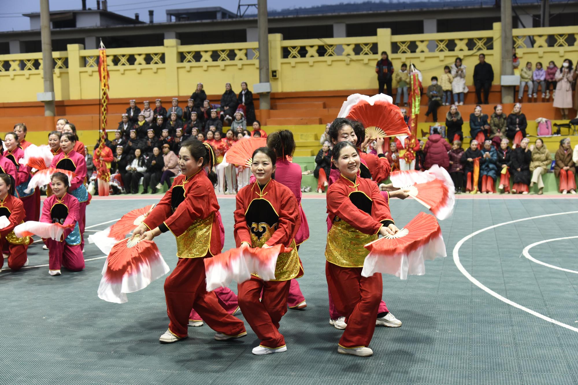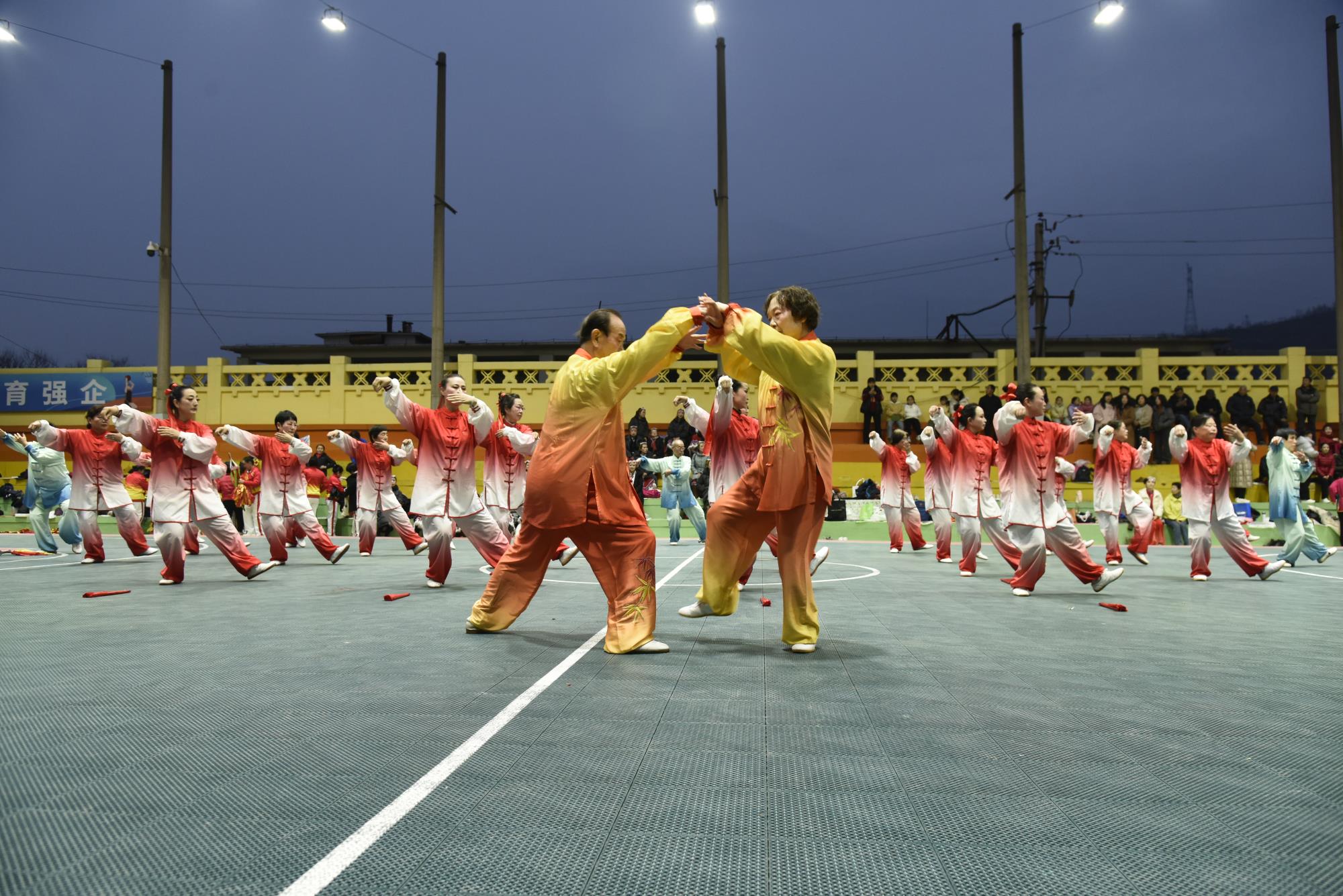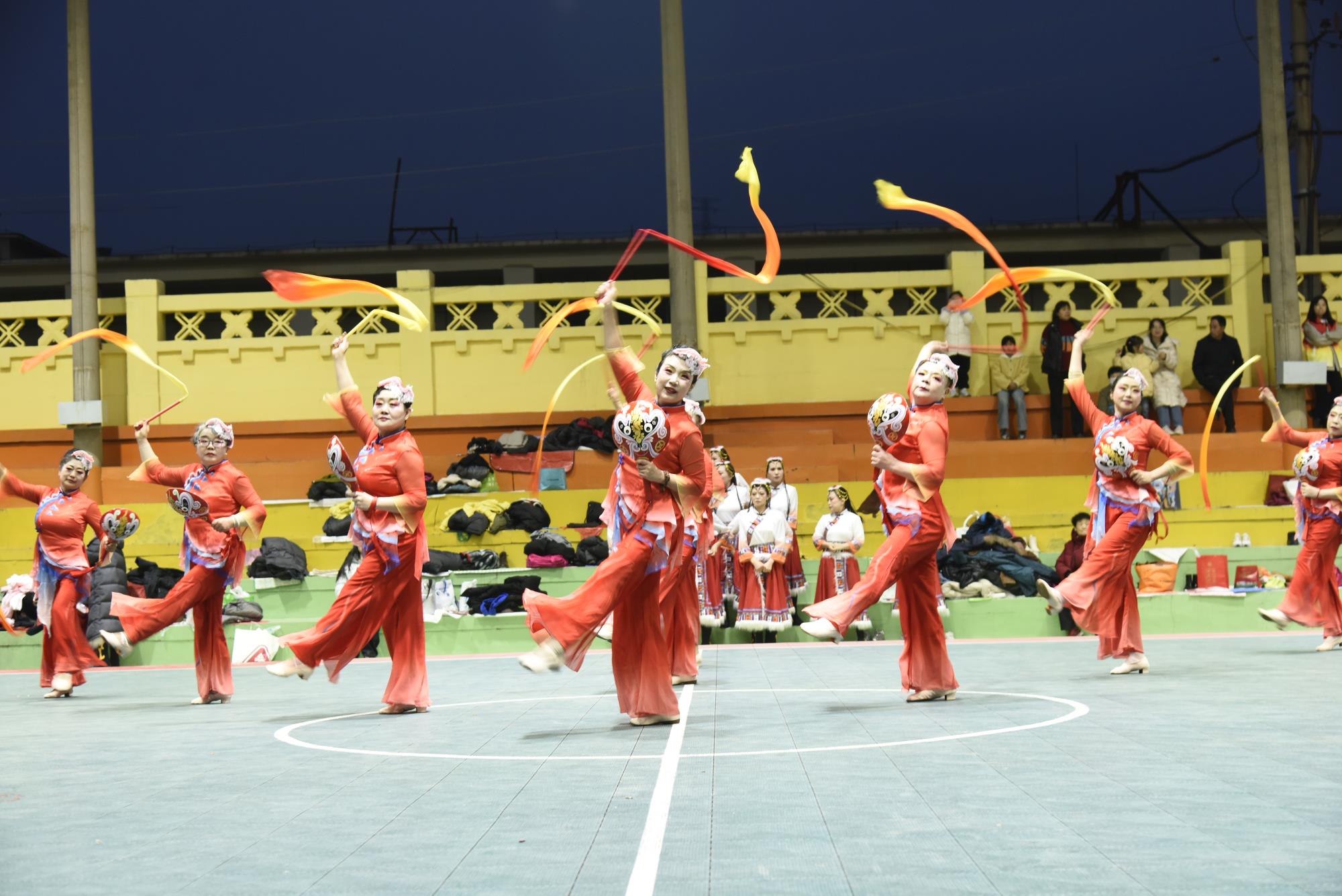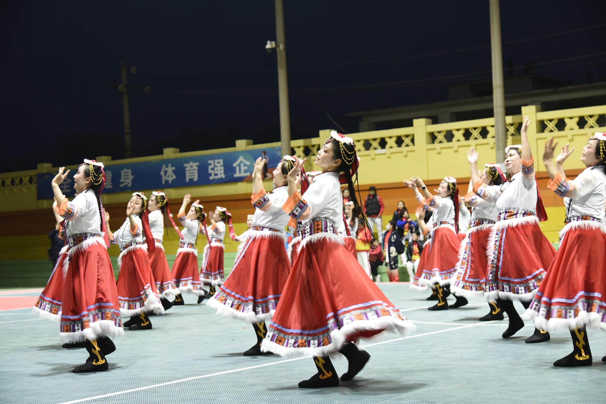 晚上7点,宝钛老区灯光球场华灯璀璨、人潮涌动,元宵游园活动在喜庆欢快的舞蹈《开门红》中正式拉开帷幕。气势磅礴的《彩龙舞东方》惊艳登场,飞天龙灯在夜空中盘旋升腾,瞬间点燃全场热情;刚柔并济的《太极表演》行云流水,尽显宝钛人干事创业张弛有度、步履铿锵的精神风貌;舞蹈《盛世欢歌》《舞动钛城》节奏明快、活力四射,生动展现钛城儿女昂扬向上、奋发有为的时代风采;紧接着登场的舞龙表演腾跃穿梭、气势如虹,将现场氛围一次次推向高潮;古韵十足的《大唐百戏》妙趣横生,带领观众沉浸式穿越市井繁华;两只醒狮腾挪跳跃、威武灵动,与现场观众热情互动、纳祥送福,最终狮口吐幅——“恭喜发财 万事腾意”的美好祝福引发全场阵阵欢呼。