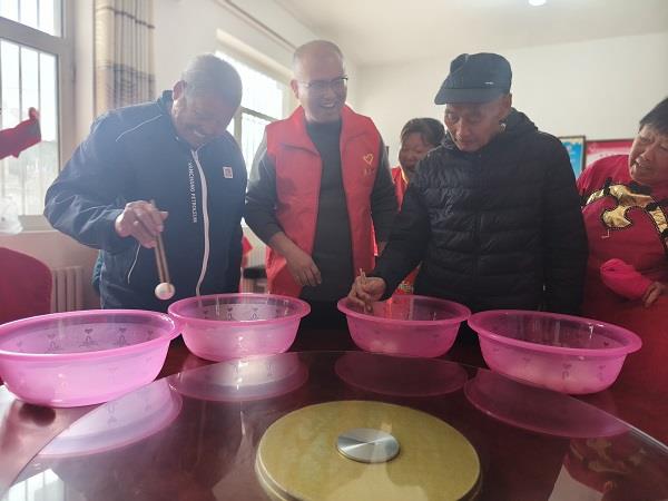 包饺子环节现场气氛热烈而温馨,老年朋友们与志愿者围站桌旁,自发分工、默契配合。老人们手把手传授地道包法,志愿者们认真学习、细心操作,擀皮、填馅、捏褶,动作在互动中愈发娴熟,欢声笑语交织成暖心乐章。活动中,工作人员悄悄在三枚饺子里包入硬币,寓意“平安顺遂、福气相伴”。待热气腾腾的饺子端上桌,大家围坐共食,分享美味,而承载着美好寓意的三枚硬币,恰好均被驻村队员幸运吃到,现场响起阵阵祝福掌声,一碗碗饺子不仅暖了胃,更拉近了心与心的距离,温情在烟火气中静静流淌。