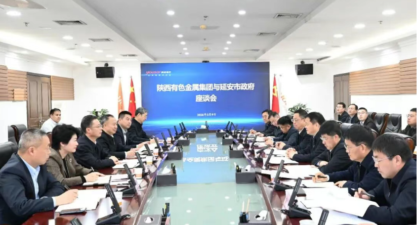 3月9日,陕西有色金属集团党委书记、董事长吴群英在集团总部与延安市委副书记、市长郭柱国,市委常委、常务副市长高建华一行座谈,双方就加快项目建设、深化地企合作进行交流。集团公司党委委员、副总经理黄忠良,延安市政协副主席、发改委主任刘凯参加座谈。