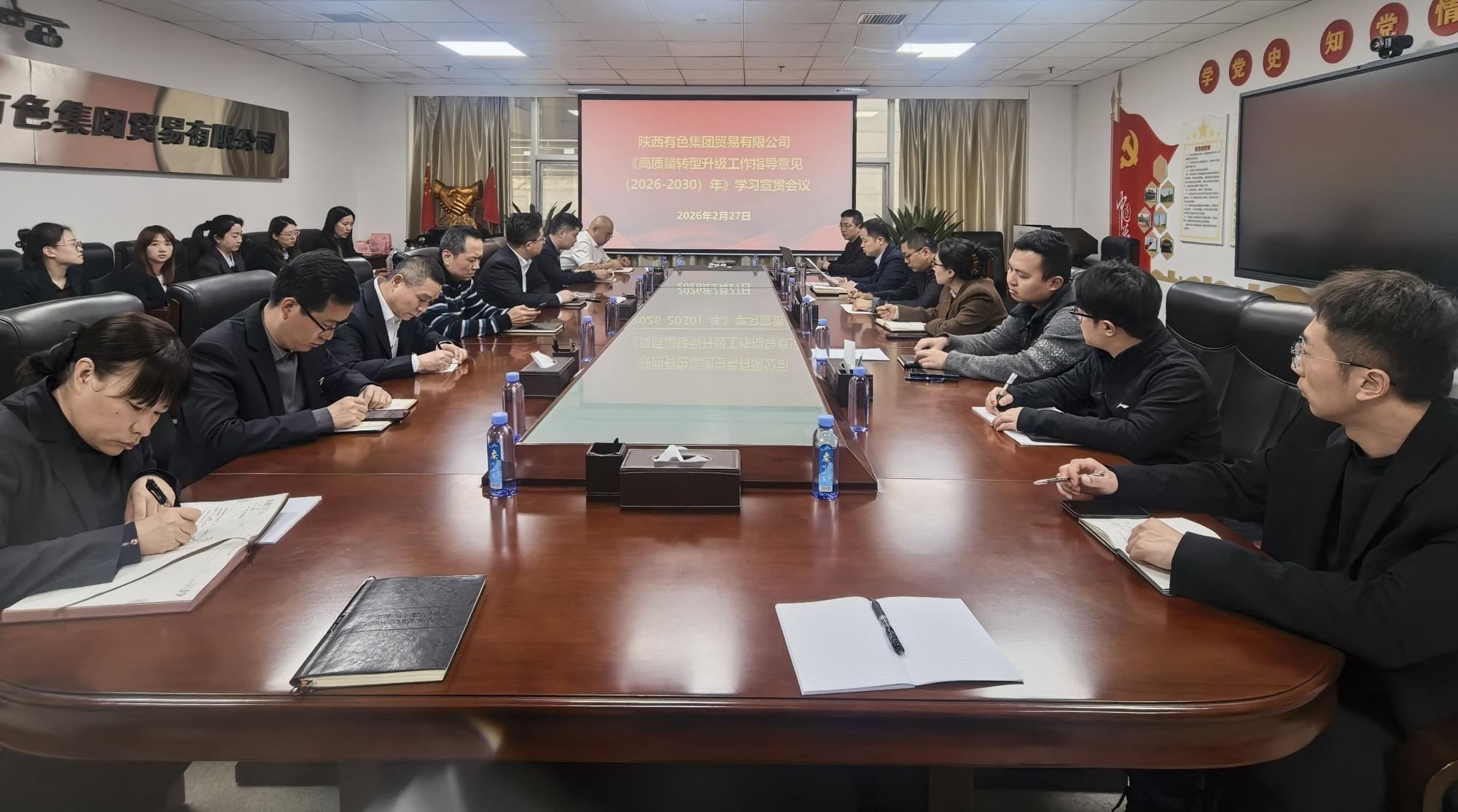 为深入贯彻落实集团公司下发《陕西有色金属控股集团有限责任公司高质量转型升级工作指导意见(2026-2030年)》重要文件精神,确保集团各项决策部署在贸易公司落地生根。2月27日,公司组织召开了专题学习宣贯会议,全体干部职工参加会议。
