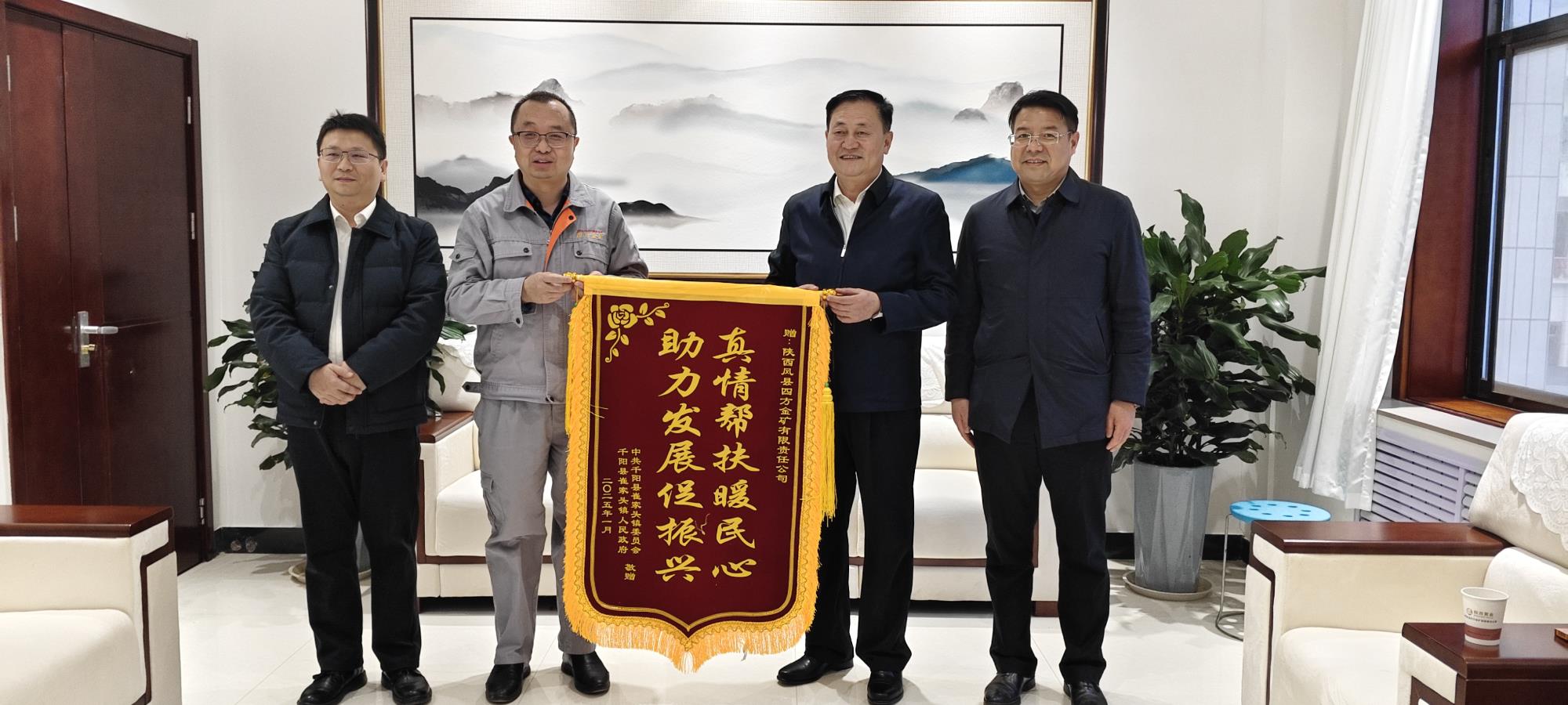 1月7日,宝鸡市千阳县县委常委、副县长何红军,副县长李弦一行到黄金集团四方金矿座谈交流,深化政企合作。千阳县领导对四方金矿驻村帮扶工作成效给予高度肯定,向公司赠予了“真情帮扶暖民心 助力发展促振兴”锦旗。