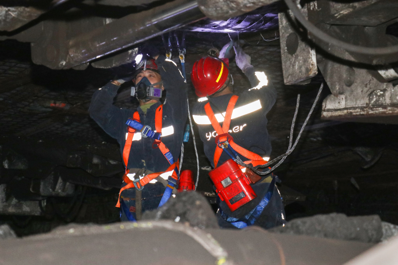 作业现场,为确保挂网、起网作业顺利进行,煤业公司特邀网片生产厂家现场指导,各区队对工程质量严格把关,保障末采工作的高质量完成。面对时间紧、任务重、工艺要求高的实际情况,党员干部冲锋在前,骨干队员主动请缨,坚守在井下生产最前沿。支架调整、网片铺设、通道维护连网及清煤作业劳动强度大、安全风险高,煤业公司深入分析矿压状况,对割煤速度、截割高度等参数进行科学规划与灵活调整,并提前制作工作面剖面图,细化各道工序的技术资料,保障各项作业安全高效完成。